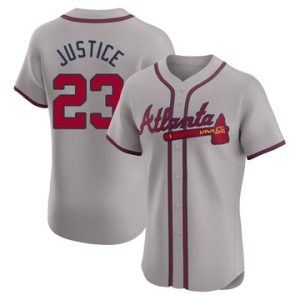 Men Atlanta Braves David Justice Elite Road Gray Jersey