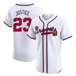 Men Atlanta Braves David Justice Elite Home White Jersey