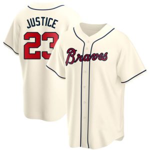 Men Atlanta Braves David Justice Elite Alternate Cream Jersey