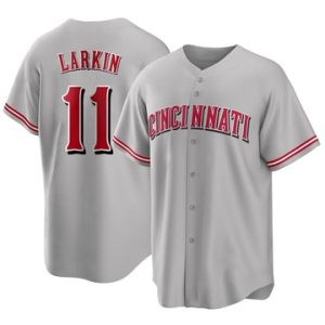 Men Cincinnati Reds Barry Larkin Replica Road Gray Jersey