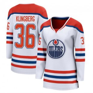 Women Edmonton Oilers John Klingberg Authentic 2025 Stanley Cup Final Reverse Retro White Jersey