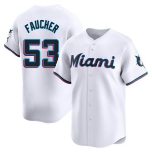 Men Miami Marlins Calvin Faucher Limited Home White Jersey