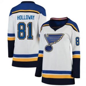 Women St. Louis Blue Jerseys Dylan Holloway Authentic Away White Jersey