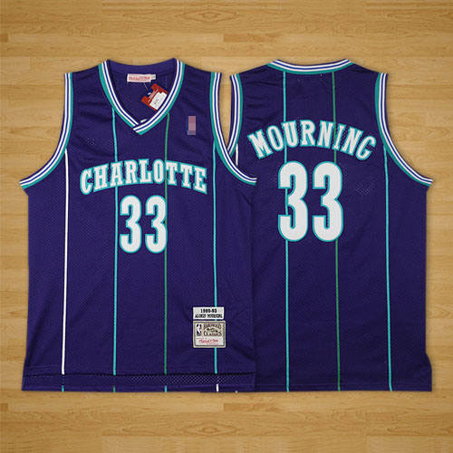 Home Charlotte Hornets Alonzo Mourning Men Alonzo Mourning Throwback Purple