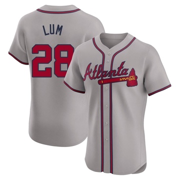 Home Atlanta Braves Mike Lum Men Atlanta Braves Mike Lum Elite Road Gray Jersey