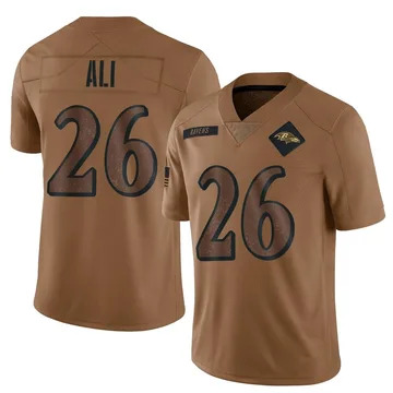 Home Baltimore Ravens Rasheen Ali Men Baltimore Ravens Rasheen Ali Vapor Limited 2023 Salute to Service Brown Jersey
