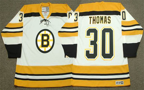 Home Boston Bruins Tim Thomas Men Boston Bruins Tim Thomas Throwback 1970 White Jersey