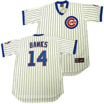 Men Chicago Cubs Ernie Banks Throwback 1984 White Jersey
