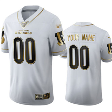 Home Cincinnati Bengals Custom Men Cincinnati Bengals Custom Limited Golden Edition White Jersey