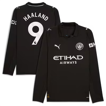 Home Manchester City Erling Haaland Men Manchester City Erling Haaland 2025/26 Long Sleeve Away Black Jersey
