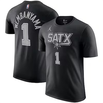 Men San Antonio Spurs Victor Wembanyama T-Shirt Silver/Black Jersey