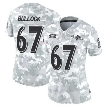Home Baltimore Ravens Corey Bullock Women Baltimore Ravens Corey Bullock Vapor Limited 2024 Salute to Service Arctic Camo Jersey