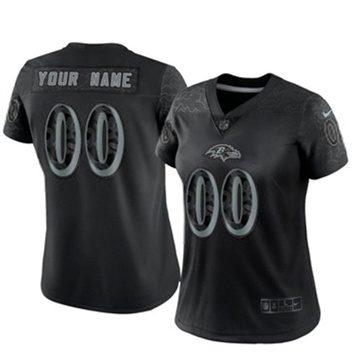 Women Baltimore Ravens Custom Vapor Limited Reflective Black Jersey