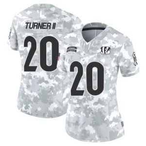 Women Cincinnati Bengals DJ Turner II Vapor Limited 2024 Salute to Service Arctic Camo Jersey $39.90