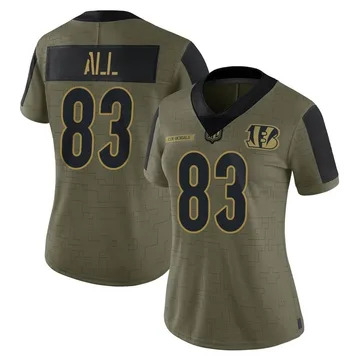 Women Cincinnati Bengals Erick All Jr Vapor Limited 2022 Salute to Service Olive Jersey $39.90