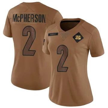 Home Cincinnati Bengals Evan McPherson Women Cincinnati Bengals Evan McPherson Vapor Limited 2023 Salute to Service Brown Jersey