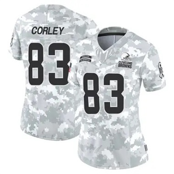 Home Cleveland Browns Malachi Corley Women Cleveland Browns Malachi Corley Vapor Limited 2024 Salute to Service Arctic Camo Jersey