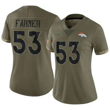 Home Denver Broncos Andrew Farmer Women Denver Broncos Andrew Farmer Vapor Limited 2022 Salute to Service Olive Jersey