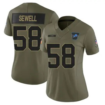 Home Detroit Lions Penei Sewell Women Detroit Lions Penei Sewell Vapor Limited 2025 Salute to Service Olive Jersey