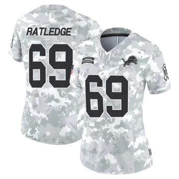 Home Detroit Lions Tate Ratledge Women Detroit Lions Tate Ratledge Vapor Limited 2024 Salute to Service Arctic Camo Jersey
