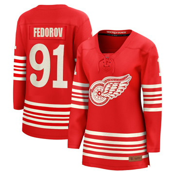 Women Detroit Red Wings Sergei Fedorov Authentic Centennial Red Jersey