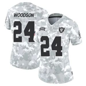 Women Las Vegas Raiders Charles Woodson Vapor Limited 2024 Salute to Service Arctic Camo Jersey $39.90