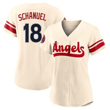Home Los Angeles Angels Nolan Schanuel Women Los Angeles Angels Nolan Schanuel Limited 2022 City Connect Cream Jersey