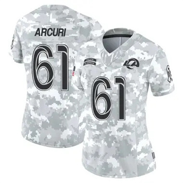 Home Los Angeles Rams AJ Arcuri Women Los Angeles Rams AJ Arcuri Vapor Limited 2024 Salute to Service Arctic Camo Jersey