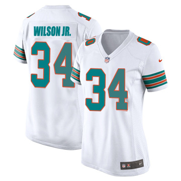 Women Miami Dolphins Jeff Wilson Jr. Vapor Limited Alternate White Jersey