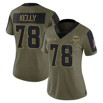 Women Minnesota Vikings Ryan Kelly Vapor Limited 2022 Salute to Service Olive Jersey $39.90