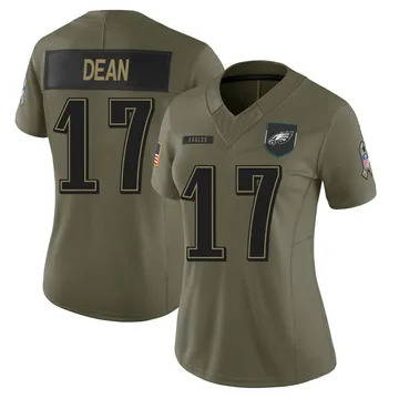 Home Philadelphia Eagles Nakobe Dean Women Philadelphia Eagles Nakobe Dean Vapor Limited 2025 Salute to Service Olive Jersey