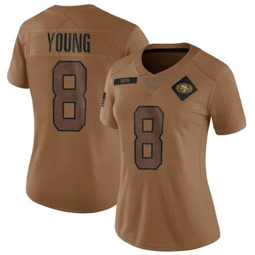 Home San Francisco 49ers Steve Young Women San Francisco 49ers Steve Young Vapor Limited 2023 Salute to Service Brown Jersey