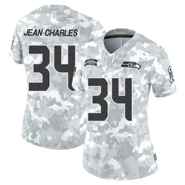 Home Seattle Seahawks Shemar Jean-Charles Women Seattle Seahawks Shemar Jean-Charles Vapor Limited 2024 Salute to Service Arctic Camo Jersey