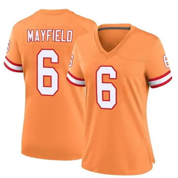 Women Tampa Bay Buccaneers Baker Mayfield Throwback Game Orange Jersey