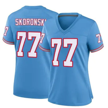 Women Tennessee Titans Peter Skoronski Throwback Game Light Blue Jersey