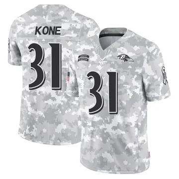 Home Baltimore Ravens Bilhal Kone Youth Baltimore Ravens Bilhal Kone Vapor Limited 2024 Salute to Service Arctic Camo Jersey