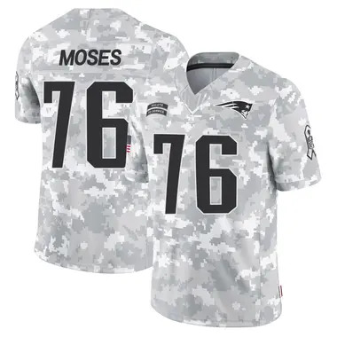 Home New England Patriots Morgan Moses Youth New England Patriots Morgan Moses Vapor Limited 2024 Salute to Service Arctic Camo Jersey
